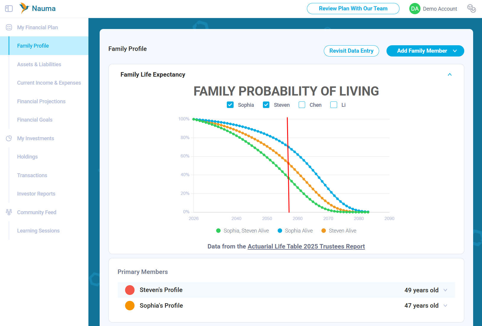 If you’re using Nauma, take a moment today to review your family profile. Adjusting your expected lifespan to a more conservative age, such as 90 or 95, can provide a much clearer picture of your long-term success rate.