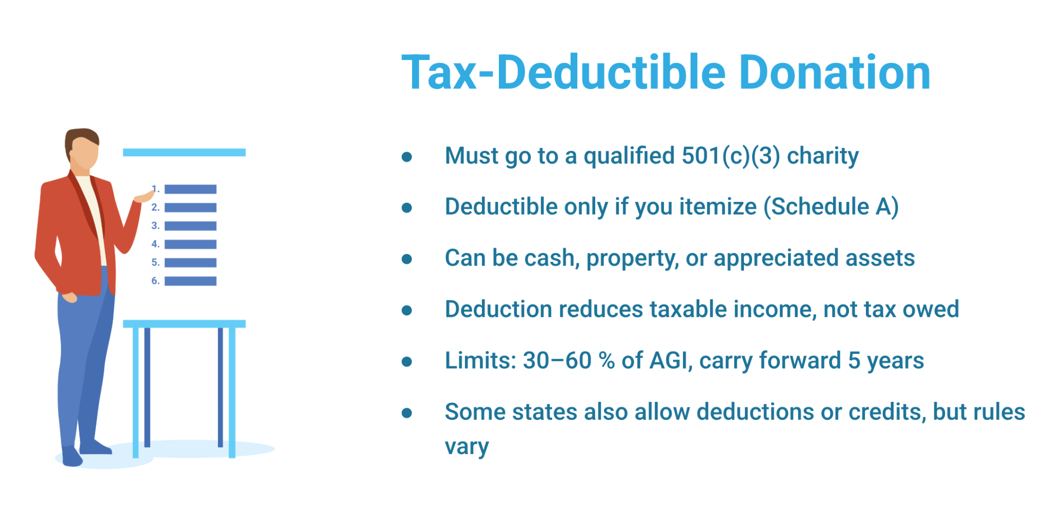To qualify for a tax deduction, your donation must go to a qualified charity, typically a registered 501(c)(3) nonprofit.