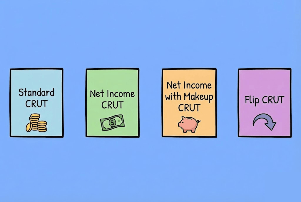 Flip CRUT: This starts as a NIMCRUT (perfect for unmarketable assets like real estate) and “flips” into a Standard CRUT after a specific triggering event, such as the sale of the asset.