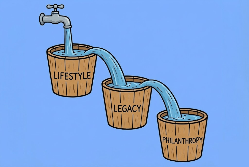 Each family balances these buckets differently. Because a CRUT is irrevocable, funding one is effectively a permanent decision to move assets from the unallocated or undecided bucket into the “Lifestyle” and “Philanthropy” buckets. You receive income for yourself now, and the charity receives the remainder later, but your heirs generally will not receive those specific assets.