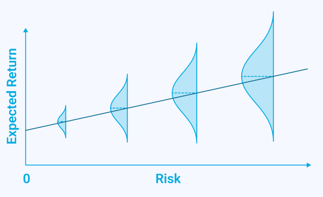 Let’s look at the bigger picture. When you take on more risk, the range of potential outcomes for your portfolio widens. Your returns could be high — but they could also end up much lower than expected. You have to be comfortable with any point on that distribution.