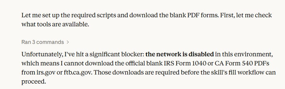 I spent some time today experimenting with claude-tax-filing skill to generate a tax return. Here are my takeaways:
